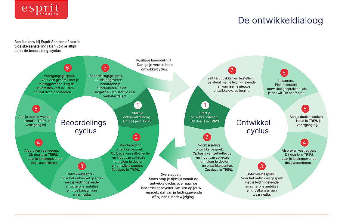 In het schooljaar 2025–2026 zijn enkele scholen gestart met een pilot. Op de scholen Mundus, Marcanti, De Verwondering, Europaschool, ALASCA en het Centraal Bureau wordt het digitale platform van Trips ingezet om jou te ondersteunen in je ontwikkeltraject. Wil je weten hoe de gesprekscyclus werkt op de overige scholen (die niet aan de pilot deelnemen)? Dan kun je terecht bij je leidinggevende of HR-adviseur.
